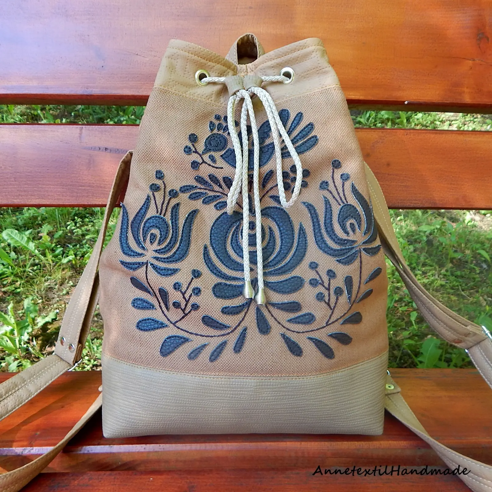Matyó madaras többfunkciós hátizsák/oldaltáska, barna