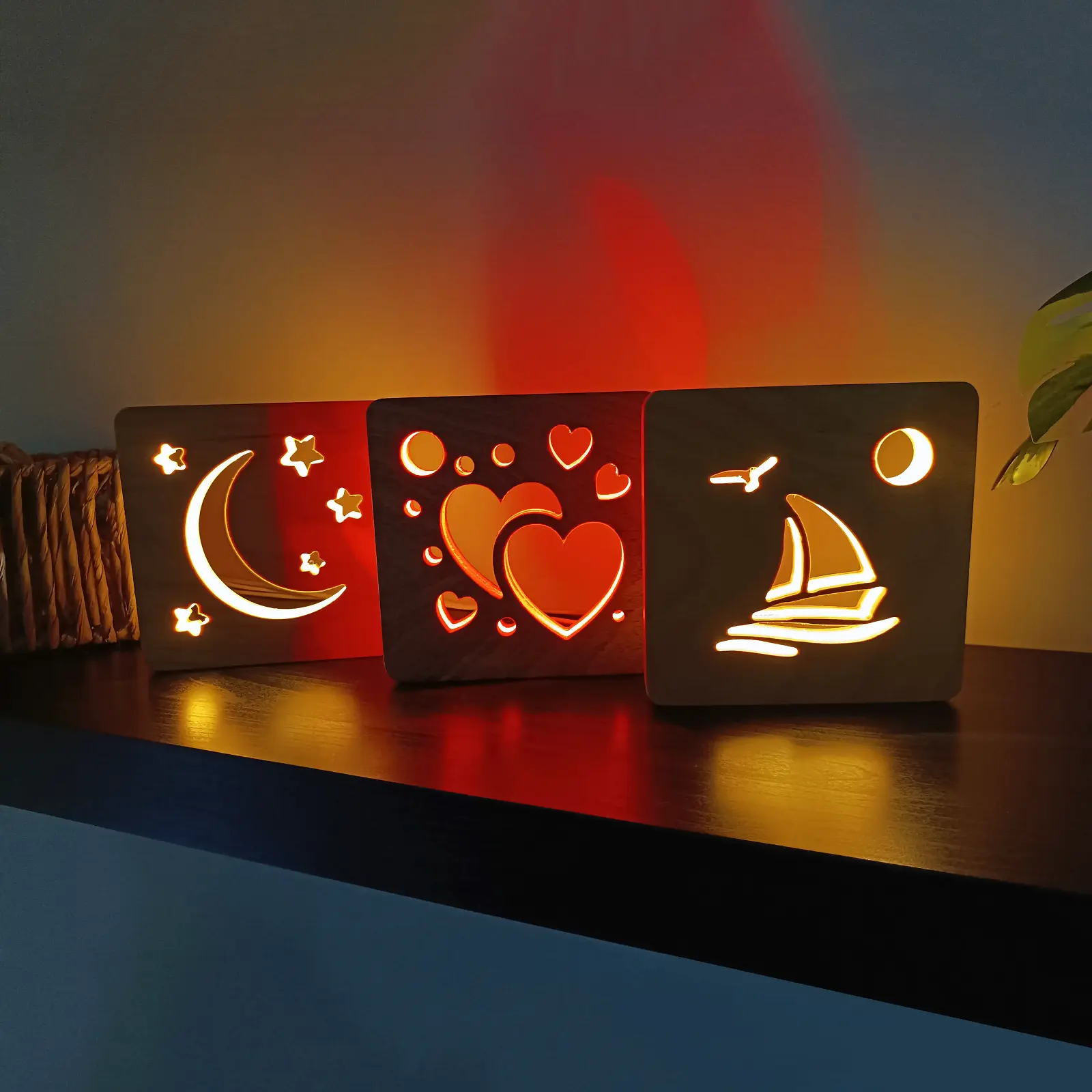 Szíves, piros fényű világító fa dekoráció – Hangulatos éjszakai fény gyerekszobába